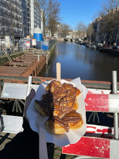 Sat: We'd booked a tour of the Anne Frank House and a canal cruise this day! We picked up delicious mini pancakes with nutella on our walk over.